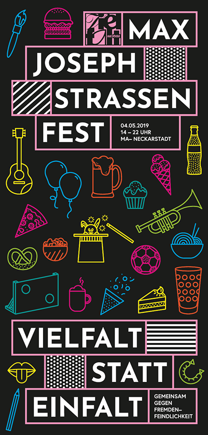 Für das Max-Joseph-Straßenfest in der Mannheimer Neckarstadt 2019 durfte ich im Rahmen meines Praxissemesters bei Raum Mannheim zwei Plakatvorschläge beisteuern.