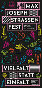 Für das Max-Joseph-Straßenfest in der Mannheimer Neckarstadt 2019 durfte ich im Rahmen meines Praxissemesters bei Raum Mannheim zwei Plakatvorschläge beisteuern.