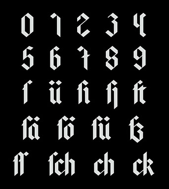 In "rehab" geht es um die Herkunft und Zukunft gebrochener Schriften. Als Leitschrift habe ich die "Bajern" von Anton Bolin verwendet und sie um diverse Glyphen und Ligaturen ergänzt.