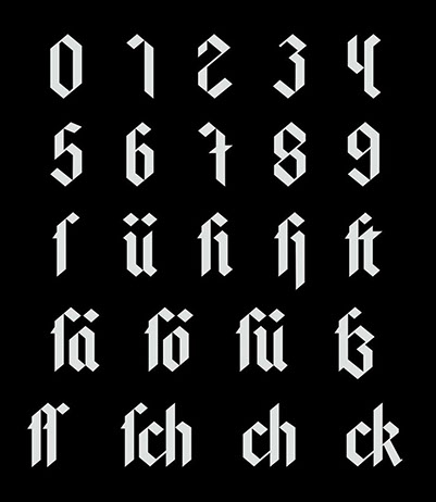 "Rehab" is about the origin and future of broken fonts. I used Anton Bolin's "Bajern" as main font and supplemented it with various glyphs and ligatures.